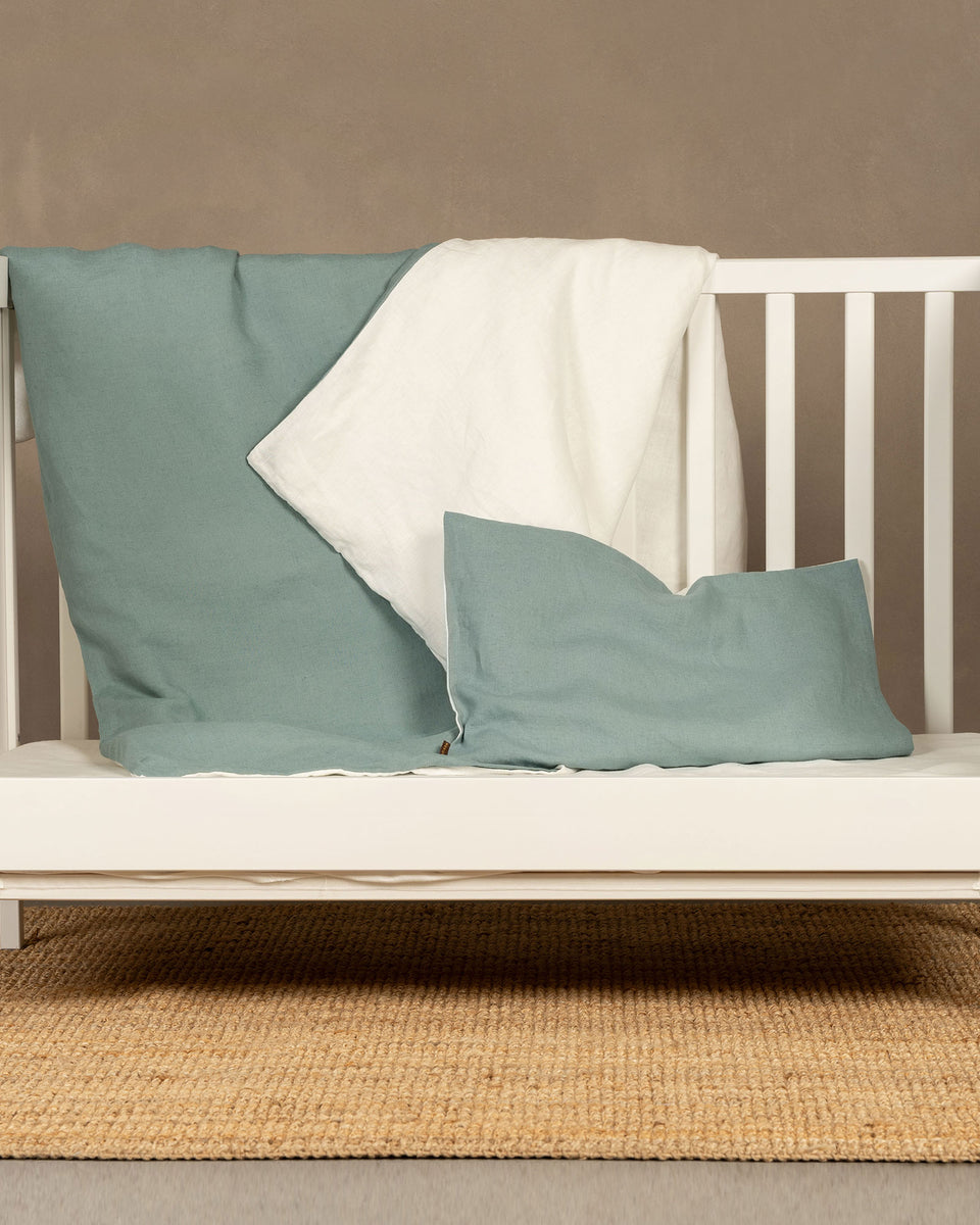 Halten Sie Ihr Baby während heißer Sommernächte mit unserem Leinen-Babykissenbezug kühl und bequem. Hergestellt aus hochwertigem 100% Leinen, besticht unser Kinderkissenbezug durch ein verspieltes doppelseitiges Design.