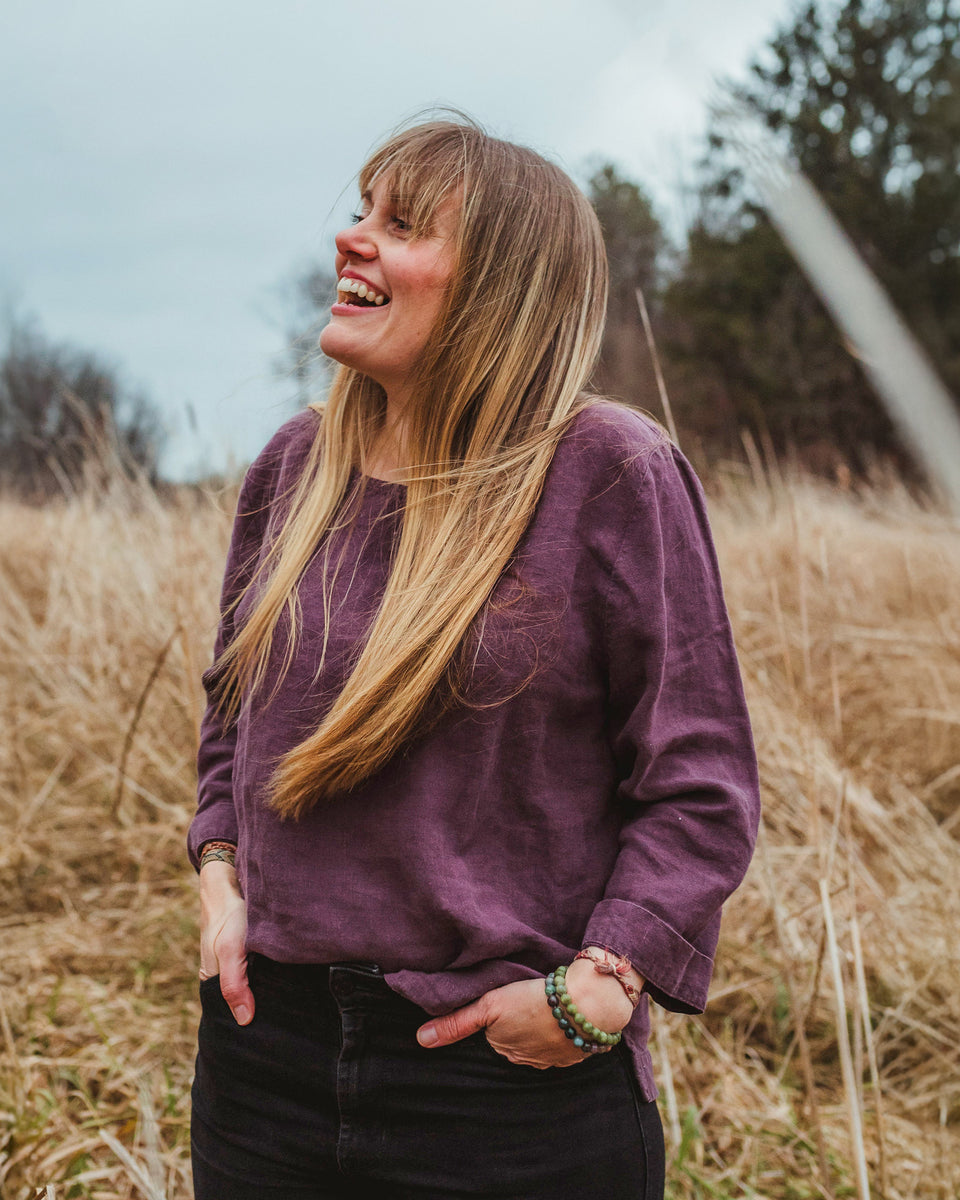 Nora hat eine entspannte Passform, nicht zu locker oder oversized. Bitte beachten Sie, dass das Kleidungsstück auf natürliche Weise weicher und entspannter wird, wenn Sie es den ganzen Tag über tragen. Es wird bequemer, wenn Sie sich darin bewegen.