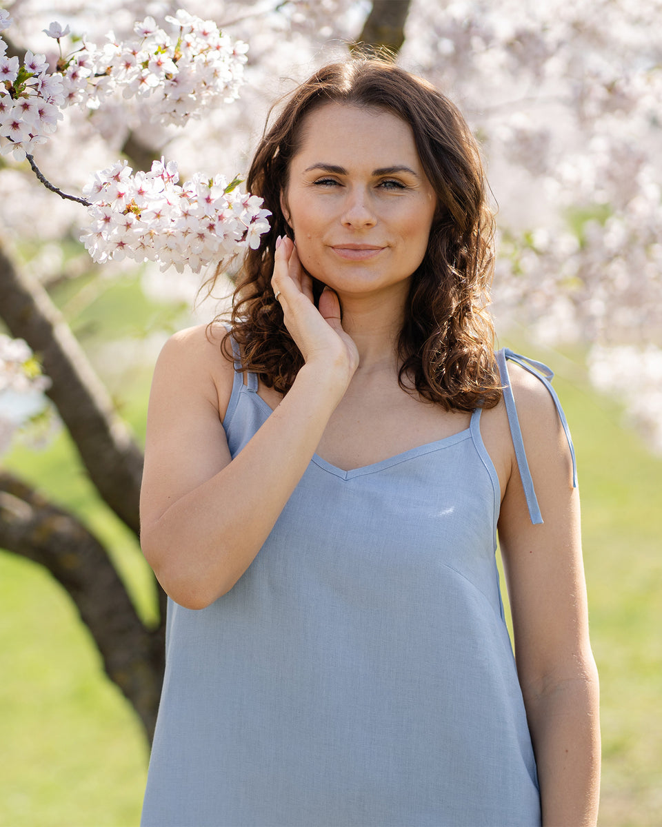 Unser Sommerkleid besteht aus 100 % Bio- und nachhaltigem Leinenmaterial. Das Leinenkleid verfügt über verstellbare Spaghettiträger, eine Midi-Länge und einen dezenten V-Ausschnitt vorne. Der atmungsaktive Stoff hält Sie bei wärmerem Wetter kühl und frisch. Außerdem kann dieses stilvolle Leinenkleid tagsüber mit Strumpfhosen und einem Pullover kombiniert werden.