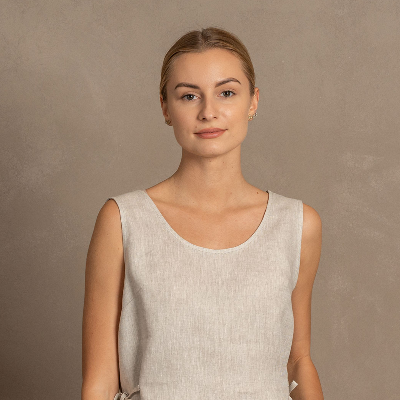 Die Ava Leinenweste ist ein zeitloses Garderoben-Essential, gefertigt aus 100 % natürlichem Leinen für Atmungsaktivität und Komfort. Mit einem schmeichelhaften V-Ausschnitt und einem vielseitigen Ein-Knopf-Verschluss kann diese leichte Damenweste offen für einen lässigen Look oder zugeknöpft für eine elegante, maßgeschneiderte Passform getragen werden. Perfekt zum Schichten in jeder Jahreszeit verleiht diese Leinenweste mühelosen Stil sowohl lässigen als auch formellen Outfits.